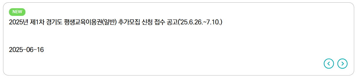 | 공고명 | 2025년 제1차 경기도 평생교육이용권 추가모집 |